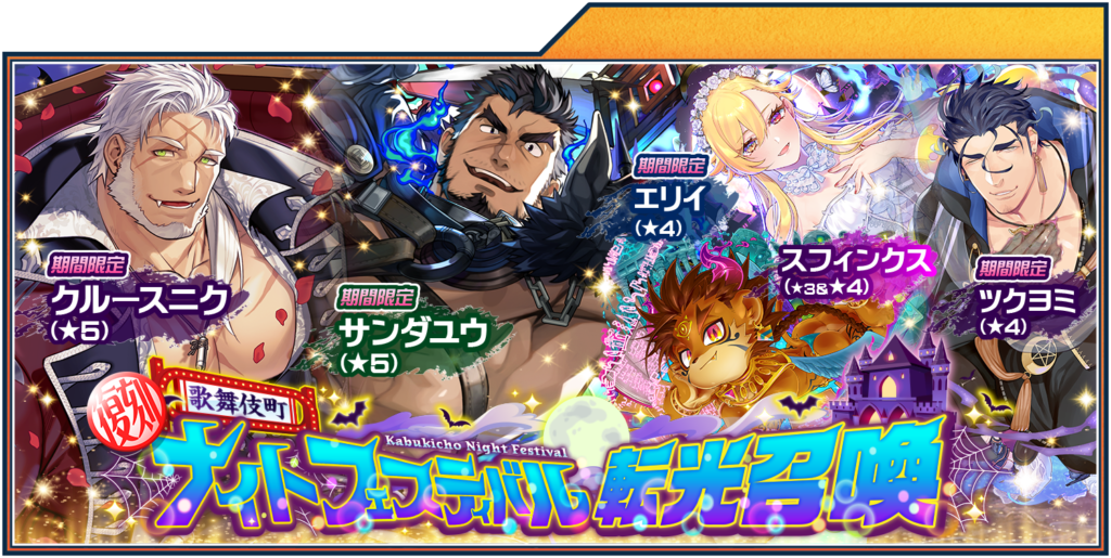 2025/10/10(金曜)20:30 「【復刻】歌舞伎町ナイトフェスティバル転光召喚」の召喚詳細について、一部属性表記に誤りがあった箇所を修正しました。