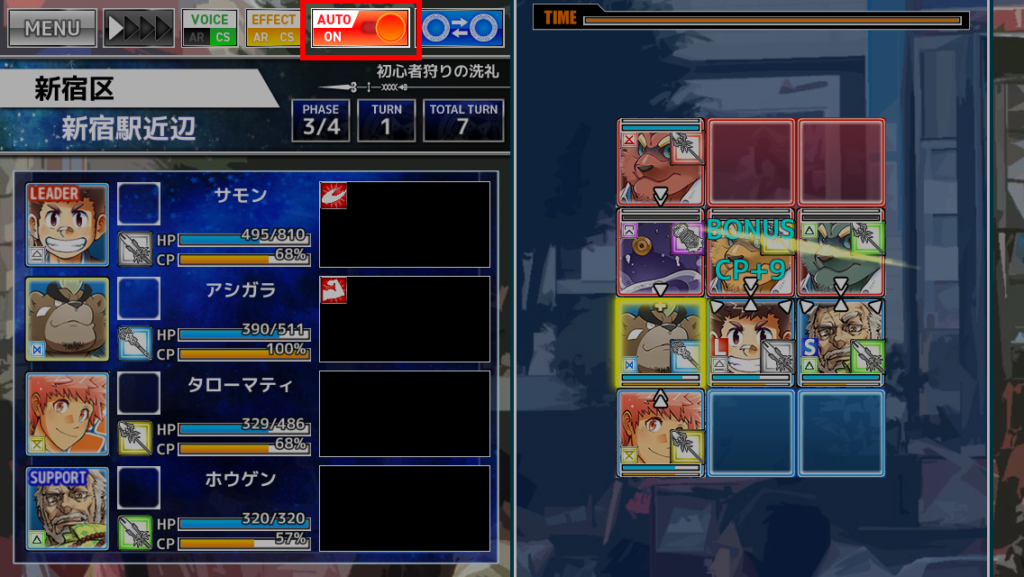 オートバトルをONにすると、味方移動フェーズの操作を自動で進行できるようになります。