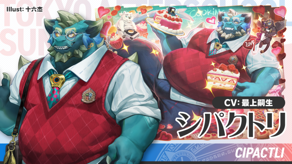 • 第一スキル「アオハル料理部員」:【フェーズ開始時】自身にHP大回復 +【ターン開始時】前3マスの敵に引き寄せ2マス +【攻撃時】自身にCP増加 +【攻撃時】隣接1マスにHP大回復