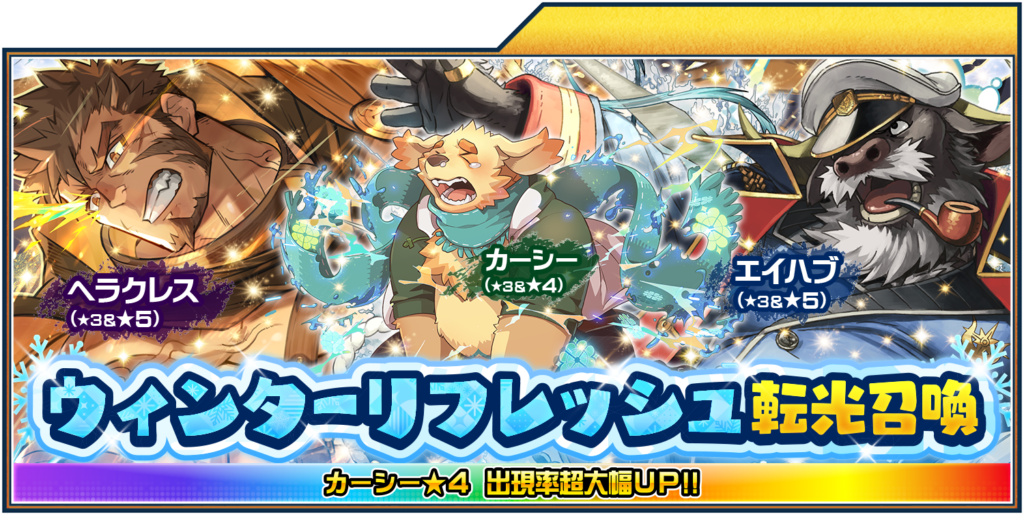 ※さらに「エイハブ★3」「ヘラクレス★3」「カーシー★3」がピックアップ(排出確率UP)されます。